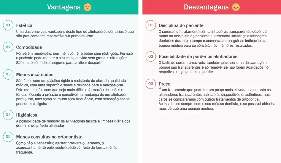 Quais as vantagens e desvantagens dos alinhadores transparentes?