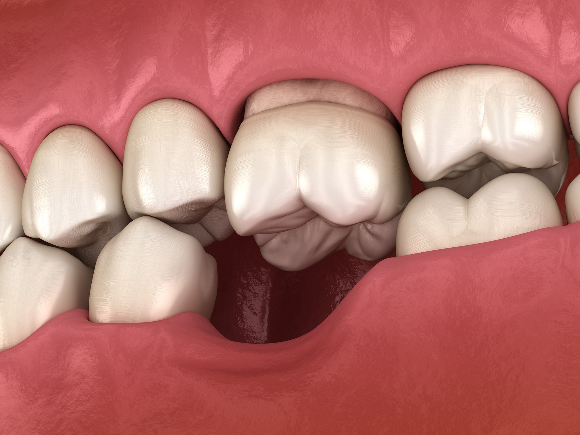 Quando um dente é perdido e não é substituído durante algum tempo, o osso tende a reabsorver, acaba por ficar mais fino ou mais baixo.