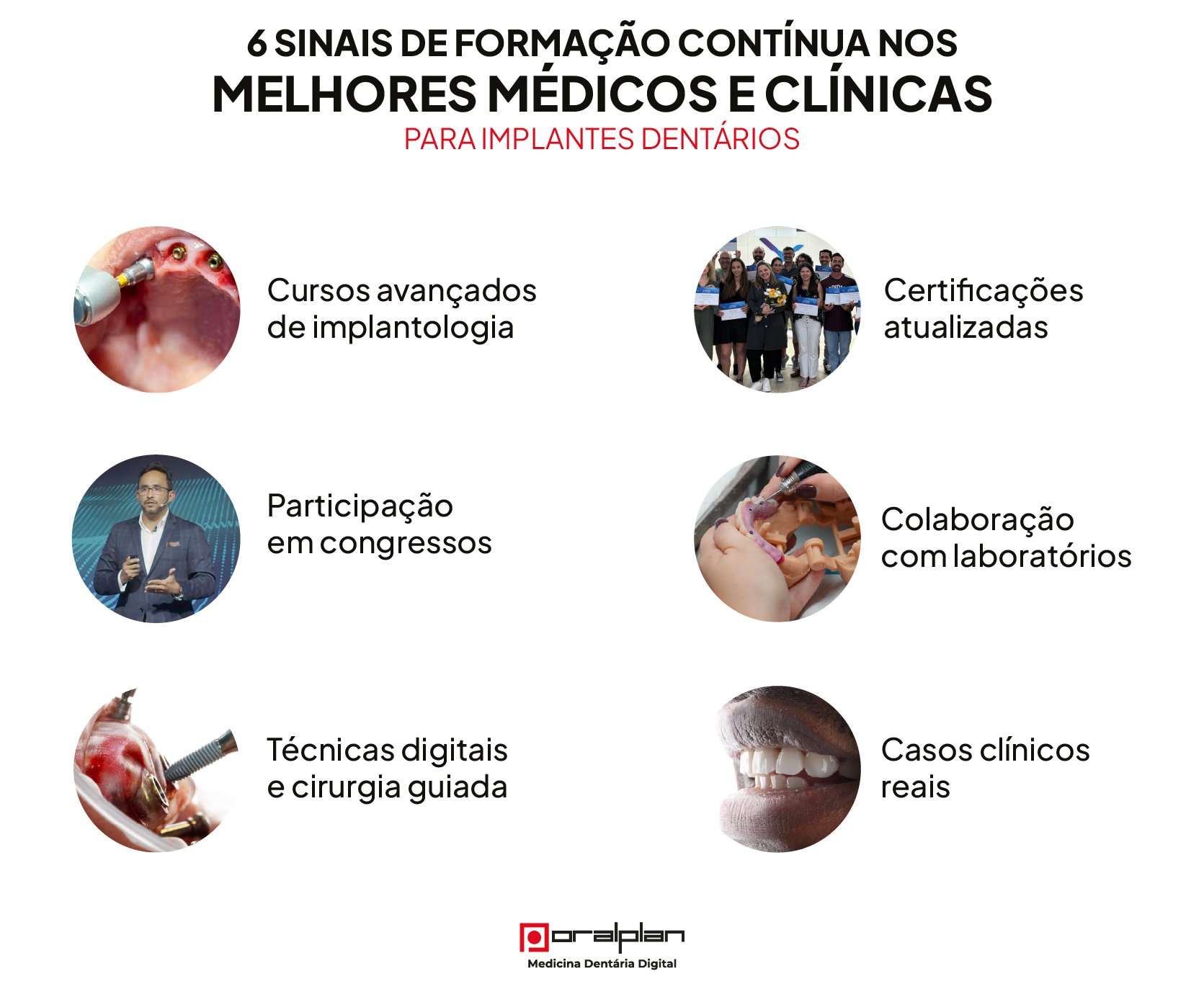 Um médico experiente mantém formação contínua ao participar em cursos avançados de implantologia, acompanhar congressos nacionais e internacionais, atualizar-se em técnicas digitais e em cirurgia guiada e ao manter as suas certificações em dia. Trabalhar em parceria com um laboratório dentário especializado e documentar casos clínicos reais também são sinais claros de evolução profissional constante.