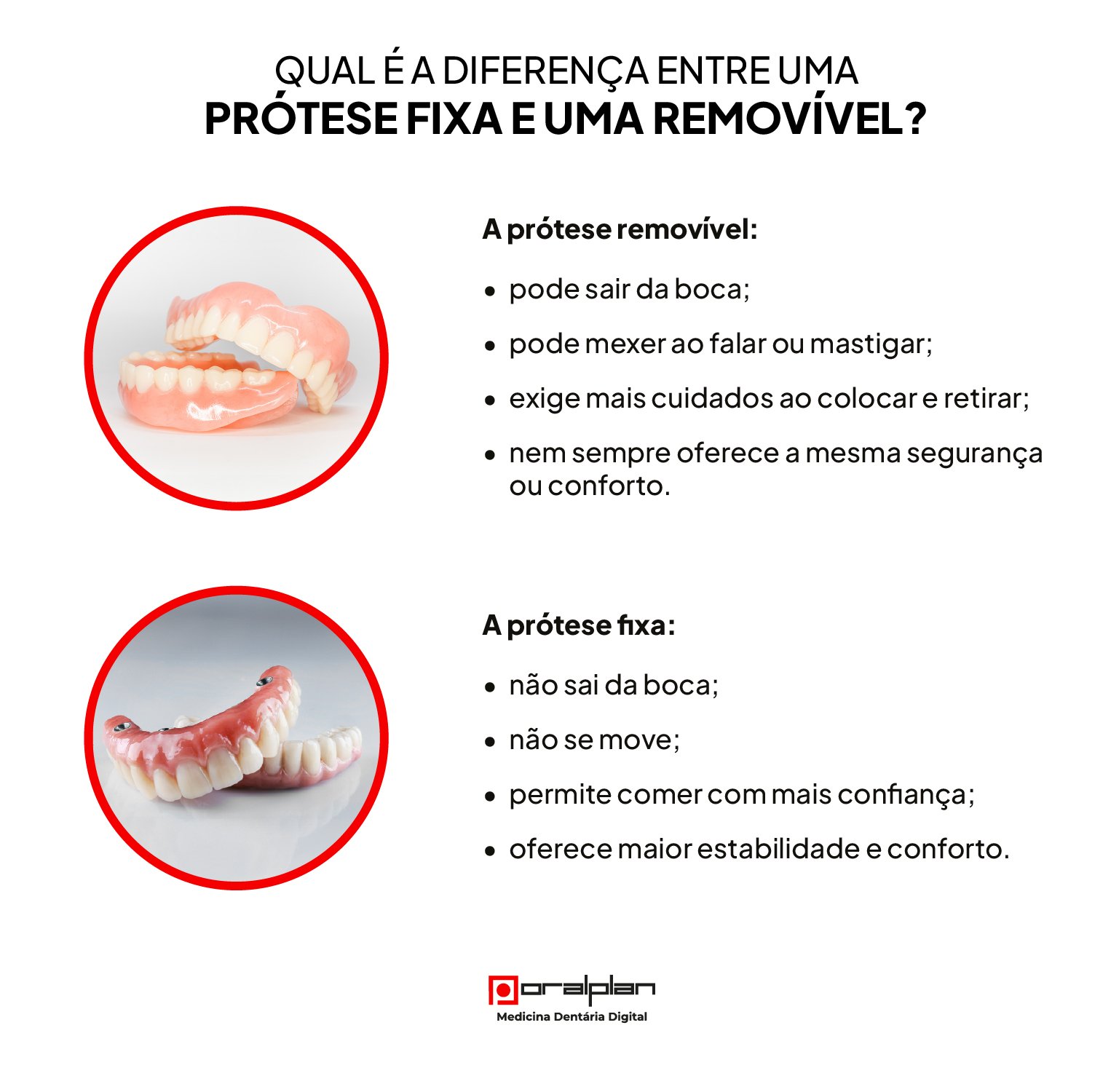 - As diferenças em relação às próteses removíveis;