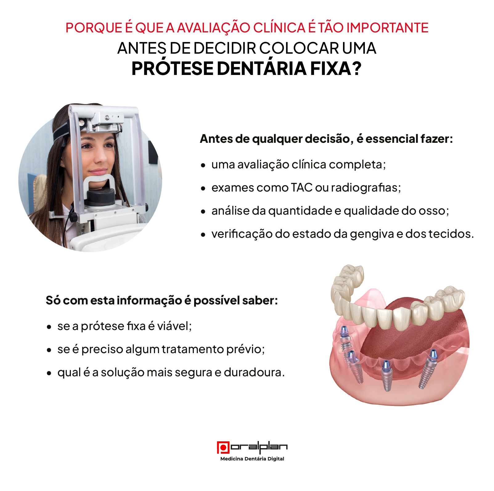 Na OralPlan, cada paciente é avaliado ao detalhe antes de se propor qualquer solução, para garantir que o tratamento é seguro, previsível e adequado às suas necessidades.