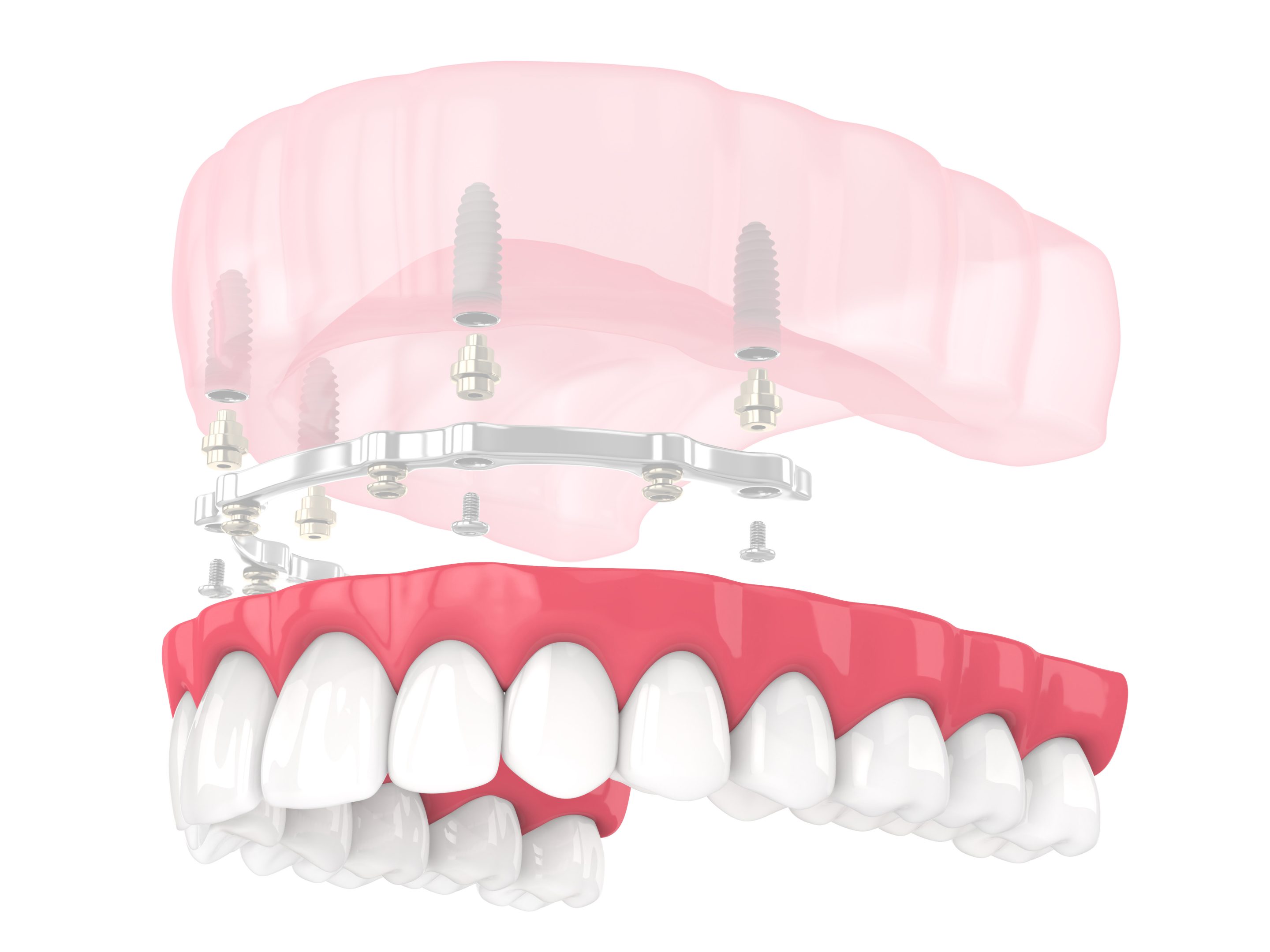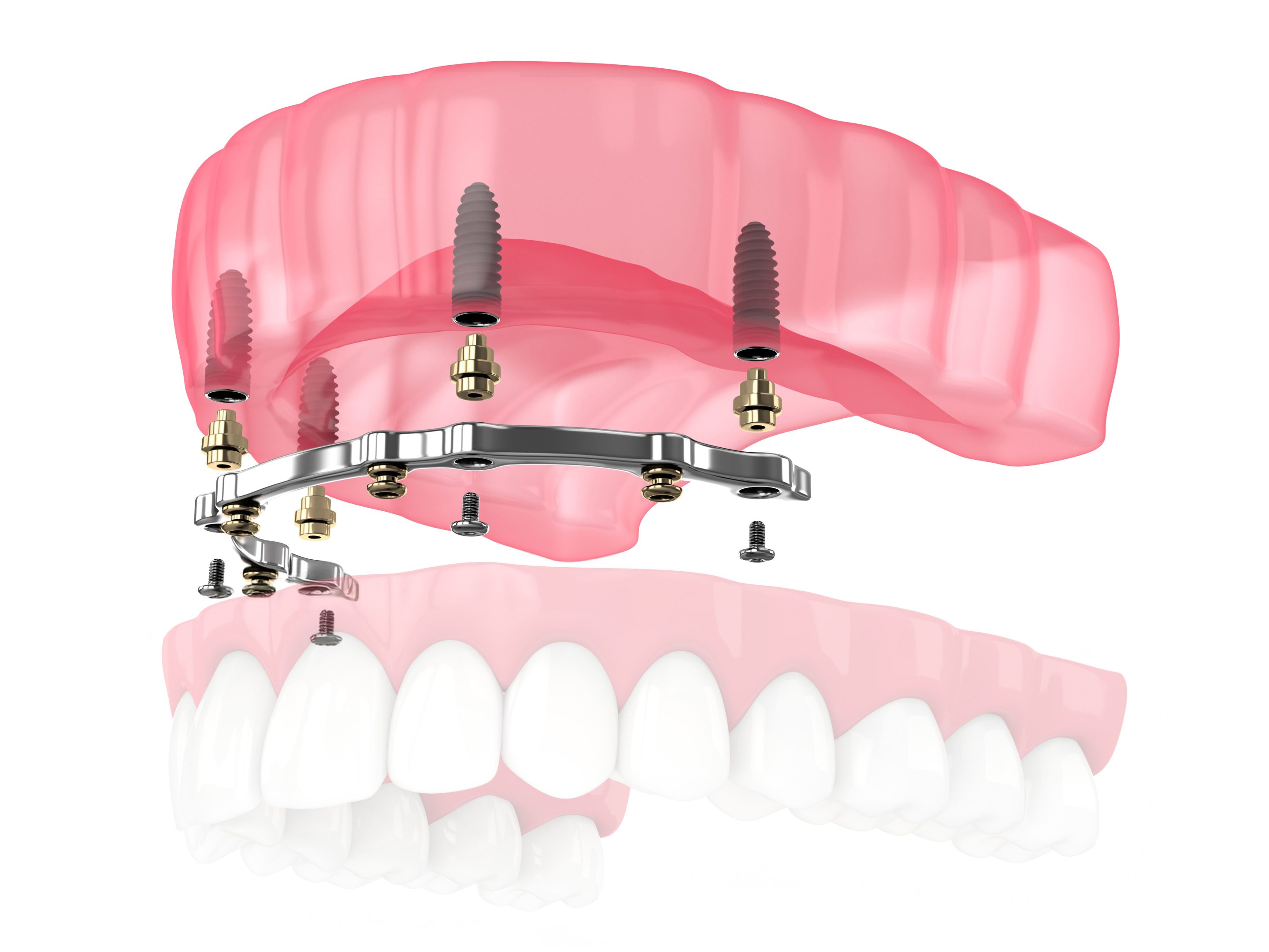 Já em relação ao sistema All-on-4®, a principal diferença está na forma como cada solução se fixa aos implantes. Enquanto o All-on-4® fixa a prótese diretamente aos implantes, sem qualquer barra, a barra fresada permite que a prótese seja removida de forma controlada para limpeza e manutenção. Além disso, distribui melhor as forças mastigatórias, o que pode ser especialmente vantajoso em pacientes que apresentam maior perda óssea. Em casos específicos, esta solução pode até oferecer maior durabilidade ao longo do tempo, dependendo do histórico clínico e das necessidades individuais do paciente.
