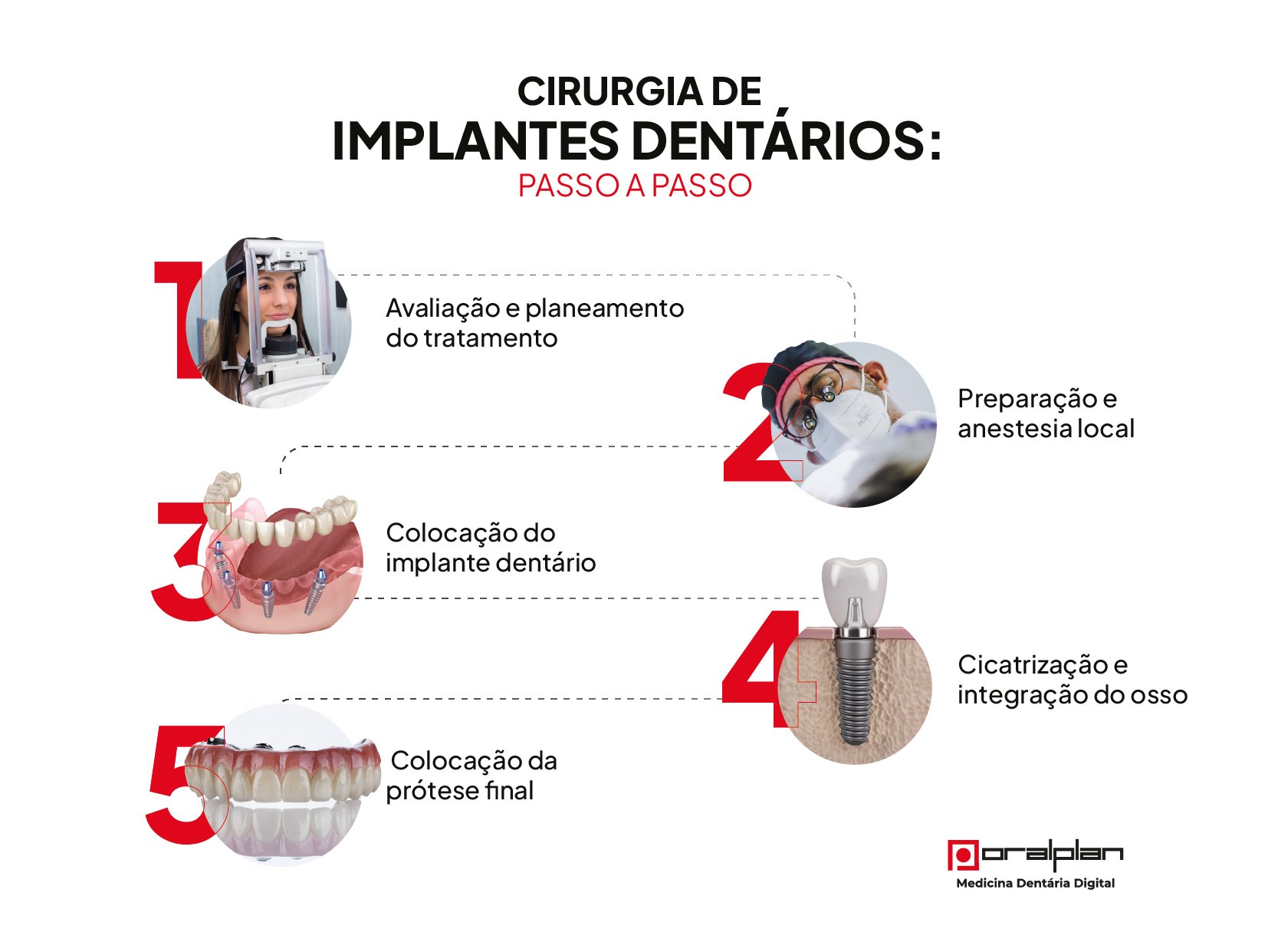 Tudo começa com uma avaliação clínica detalhada e exames 3D (como a tomografia), que permitem ao médico dentista planear a cirurgia com total precisão.