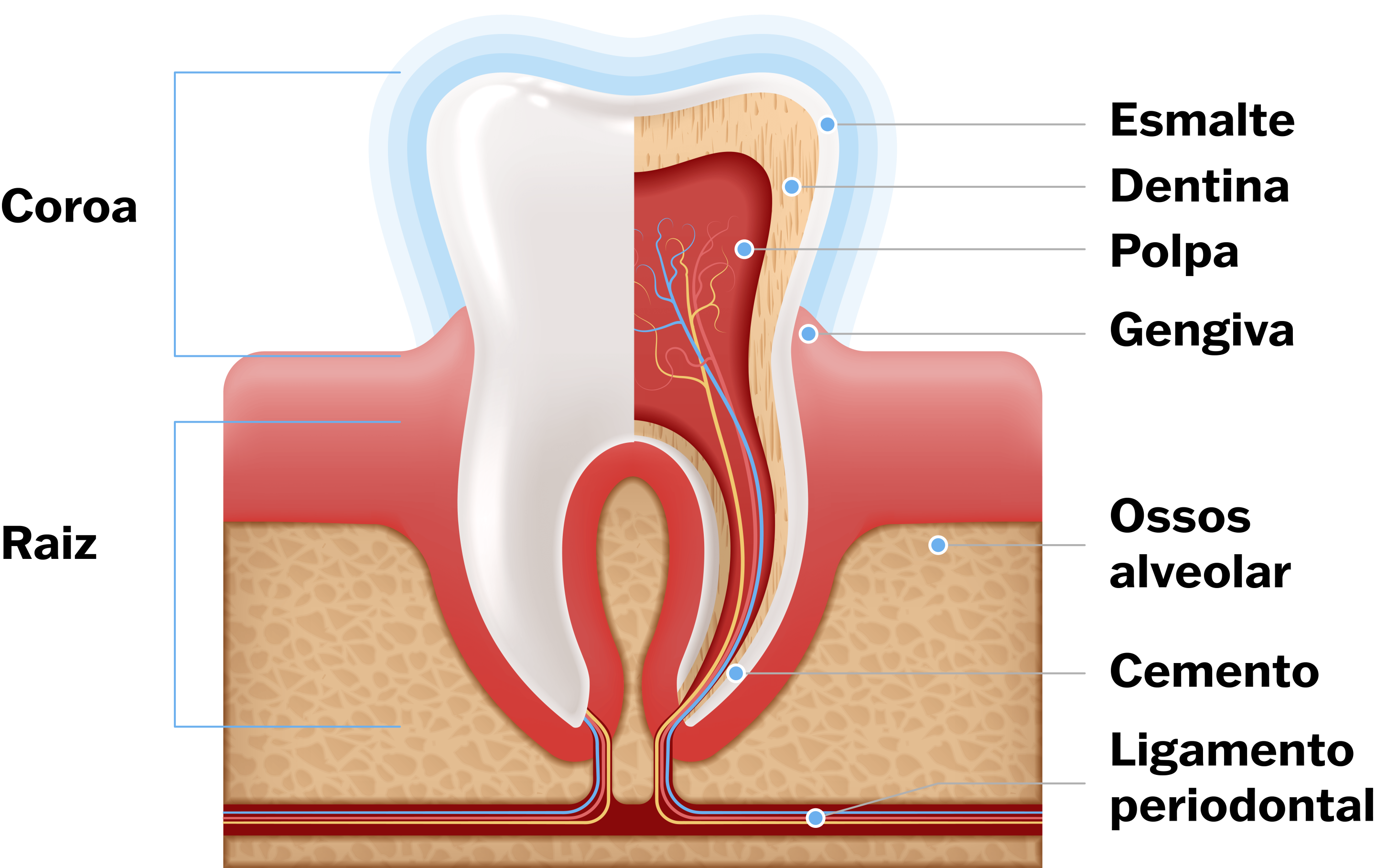 Os dentes são estruturas complexas compostas por esmalte, dentina e polpa.